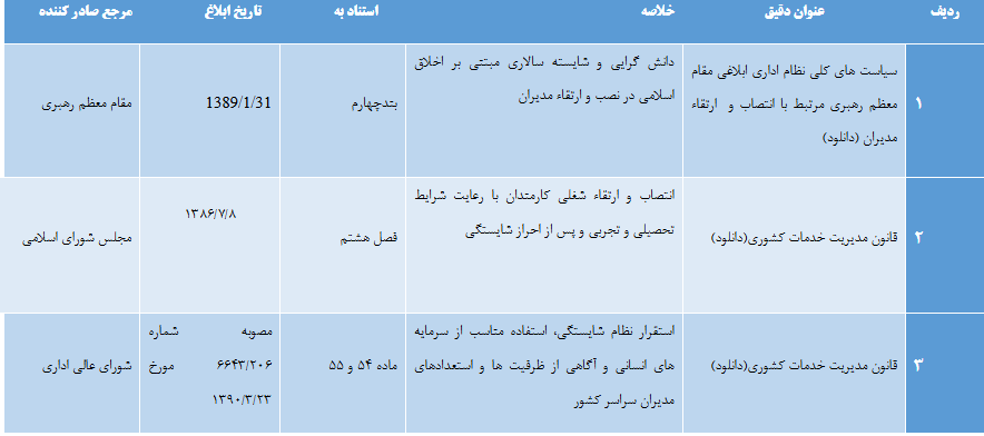 استقرار نظام شایسته سالاری با تایید بر تعهد، تخصص باورهای علمی دانش مدیریت و شناخت موضوع